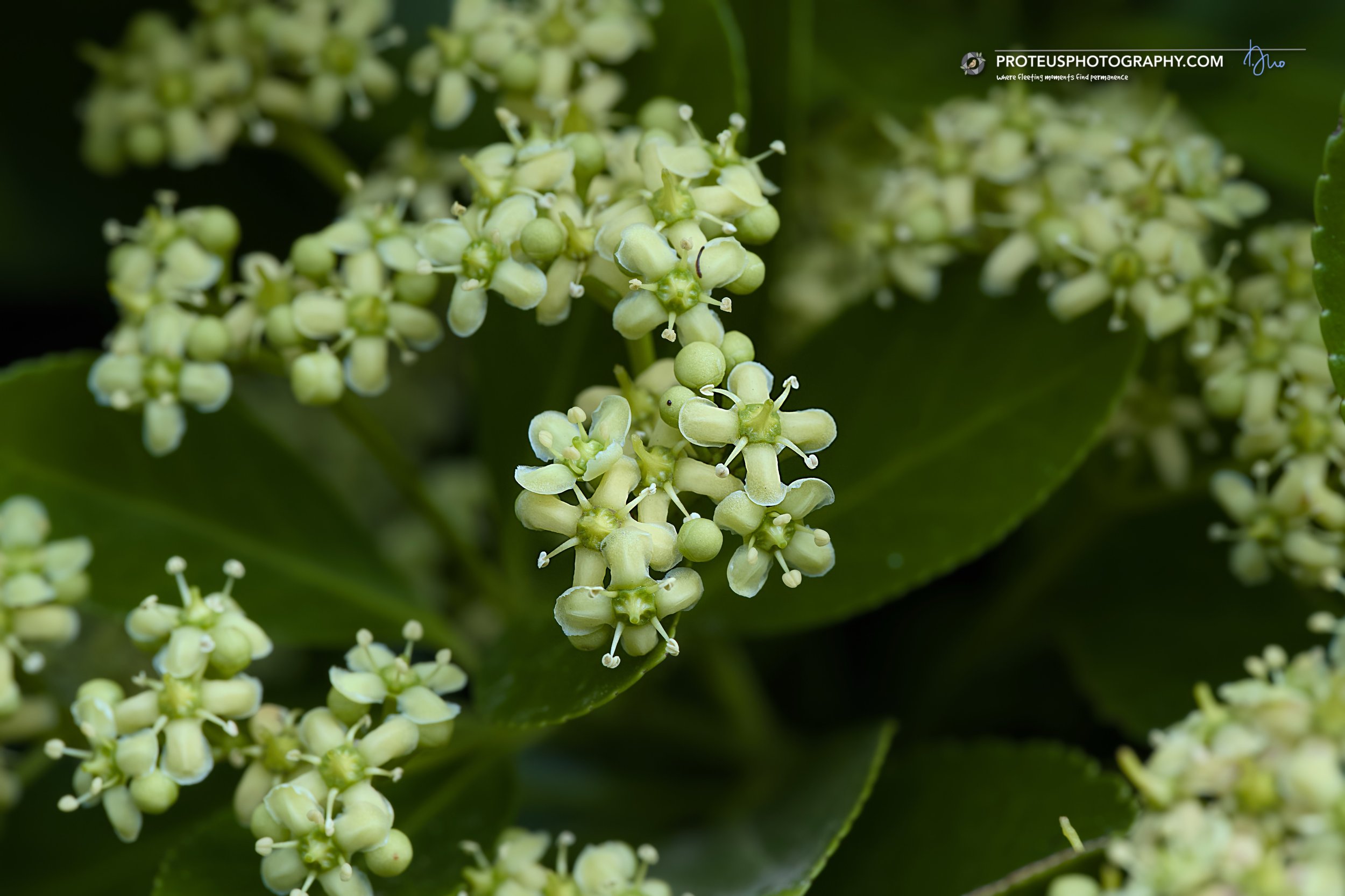 to the Japanese Spindle trees (euonymus japonicus) ... they have, rather than bees, flies that choose to swarm because of the plant's small, often inconspicuous flowers that produce scents (like acetoin) that are highly attractive to flies which act as pollinators
