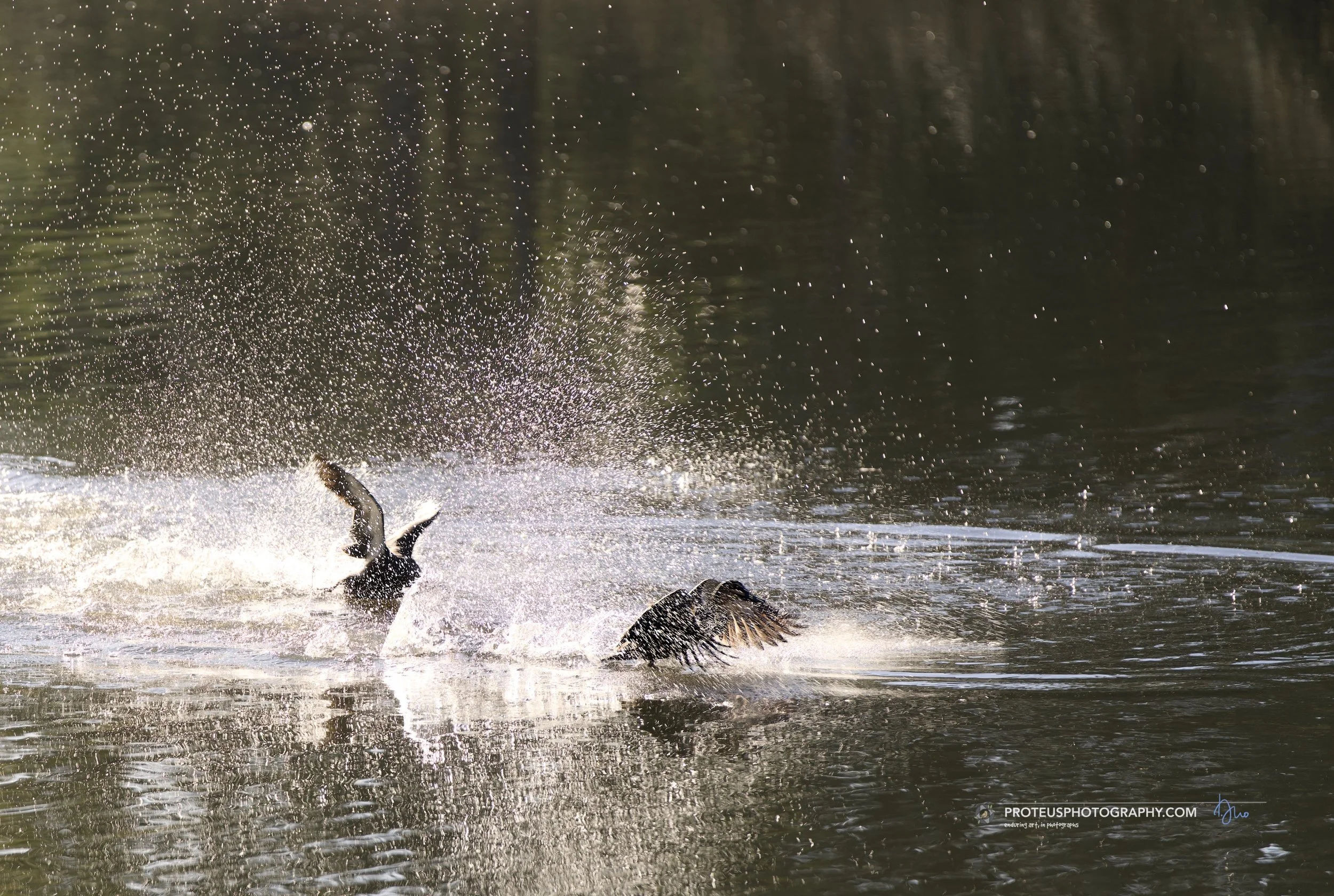 crash landing by this pair of pacific black ducks (anas superciliosa)